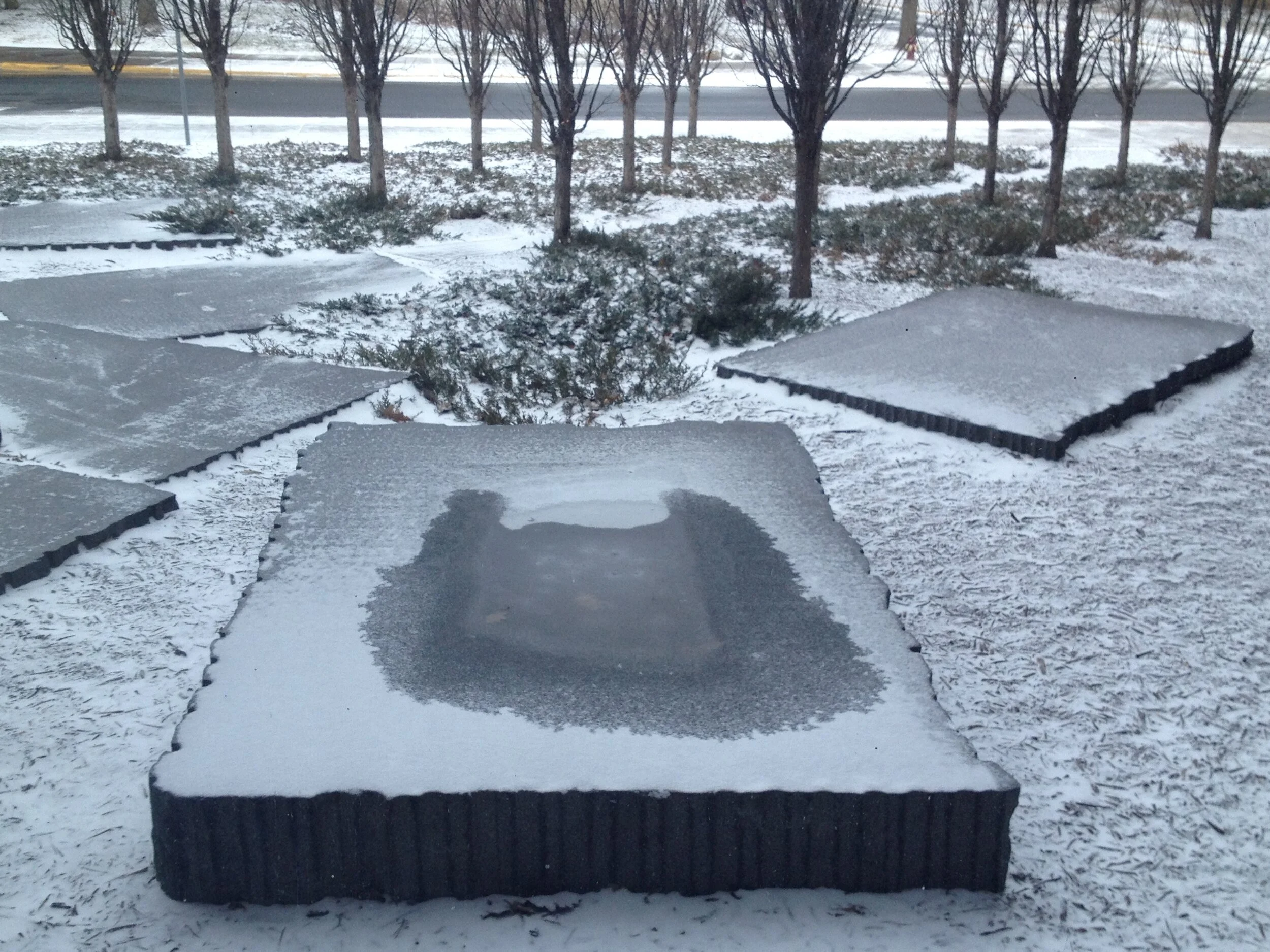 The location of the granite was recorded by GPS, and inscribed into the slabs. Visitors read these coordinates and many are able to deduce that the location is north of where they are on site. This may lead to musings on the origin of the stone, the quarrying, and the construction process. Or it may be a complete mystery to passerby, which we also saw as an interesting result.