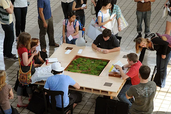 The Table for Contemplation and Action highlights the opportunity or necessity for new types of objects/spatial typologies to addresses a wider range of human emotion and need. College students are often a highly stressed population, and this table is a successful prototype of a new designed object/space can help with stress reduction. As a note in the comment book reads, “A wonderful place to sit and study. Sight, texture, smell, lovely. The opportunity to write something down and let it go is very freeing and I am thankful for it.”